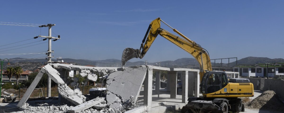 Kenti olası afetlere hazırlamak amacıyla çalışmalarını aralıksız sürdüren Kuşadası Belediyesi, aynı zamanda kaçak yapılaşma ile de etkin mücadelesini sürdürüyor. Bu kapsamda Kuşadası Belediyesi ekiplerince, Kirazlı Mahallesi 865 Sokak adresinde bulunan ve 1/1000’lik Kuşadası uygulama imar planında, nitelikli tarım arazisi olarak görülen alan üzerine ruhsatsız olarak yapıldığı belirlenen villaların yıkımına başlandı. Kuşadası Belediyesi yetkilileri, yaptıkları açıklamada Yapı Kontrol Müdürlüğü tarafından söz konusu inşaat alanının daha önce mühürlendiği, firmaya ise 3194 Sayılı İmar Kanunu’nun 32 ve 42’inci maddeleri uyarınca ruhsat alınması ve aykırılıkların giderilmesi konusunda bildirimlerde bulunulmasına rağmen gerekli kriterlerin yerine getirilmediği belirtildi.