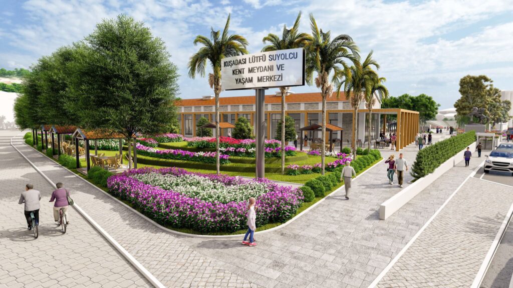Kuşadası Belediyesi, şehre modern bir dokunuş yaparak, Lütfi Suyolcu Kent Meydanı ve Yaşam Merkezi projesini hayata geçiriyor. Bu kapsamlı projenin içeriğinde 38 dükkan, 2 katlı 600 araçlık otopark, 500 kişilik amfi tiyatro, çocuk oyun ve yürüyüş alanları gibi birçok özellik bulunuyor. Kent Meydanı ve Yaşam Merkezi, hemşehrilerin geniş bir yelpazede hizmet alabileceği modern ve çok amaçlı bir alan olarak planlanıyor.
