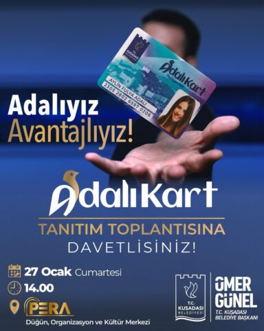 Adalı Kart, belediye tesislerinde, üye iş yerlerinde ve kentin birçok noktasında kullanılabilecek, Kuşadalılara özel indirim ve avantajlar sunacak bir kart programı olarak hayata geçiriliyor. Başkan Günel, Kuşadalıları bu önemli toplantıya katılmaya davet ederek, Adalı Kart’ın avantajlarını ve kullanım detaylarını paylaşacak.