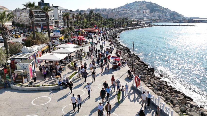 Türkiye’nin turizm cenneti Kuşadası, Ramazan Bayramı boyunca büyük bir hareketlilik yaşadı. Bayram ziyaretlerinin ardından tatil için yola çıkanlar, Kuşadası’nı tercih ederek kente canlılık getirdi. Günübirlik ziyaretçilerle birlikte, ilçenin nüfusu bayram boyunca 1 milyonu aştı. Özellikle İzmir istikametinden gelenlerin yoğun ilgisiyle, kentin girişinde uzun araç kuyrukları oluştu. Sıcak havanın etkisiyle, yerli turistler ve bölge halkı, Kadınlar Denizi, Long Beach ve Sevgi Plajı gibi ünlü plajları doldurdu. Mesire alanlarına da yoğun ilgi gösterildi; Kuşadası Belediyesi’ne ait Ada Göl Mesire Alanı ve Milli Park, adeta doldu taştı. Kentteki turistik işletmeler, bayram hareketliliğinden nasibini aldı; otel ve pansiyonlarda boş yer bulmak neredeyse imkansız hale geldi. Bu canlılık, esnafı da sevindirdi, kentin sokakları bayram coşkusuyla doldu.