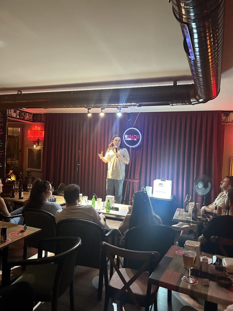24 Mayıs Cuma akşamı, Kuşadası Piano Akustikhanne, Hidayet Tılı’nın tek kişilik stand-up gösterisine ev sahipliği yaptı. Tiyatro Efes’in organize ettiği bu özel gece, yoğun katılımla gerçekleşti ve izleyicilere unutulmaz anlar yaşattı.