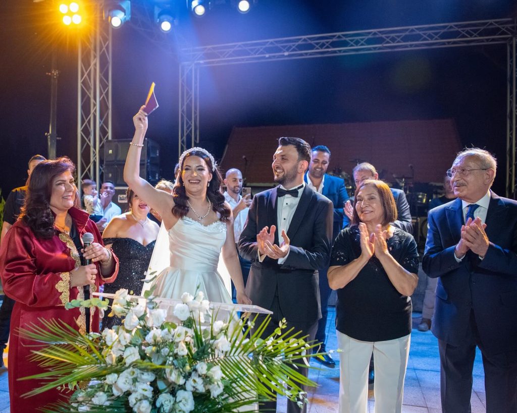 Düğün törenine önceki dönem CHP Genel Başkanı Kemal Kılıçdaroğlu, Aydın Büyükşehir Belediye Başkanı Özlem Çerçioğlu ve diğer değerli misafirler katılarak çiftin mutluluğuna ortak oldular. Kuşadası Belediye Başkanı Ömer Günel, yaptığı açıklamada, Ezgi ve Serkan Bey’e bir ömür boyu mutluluklar diledi.