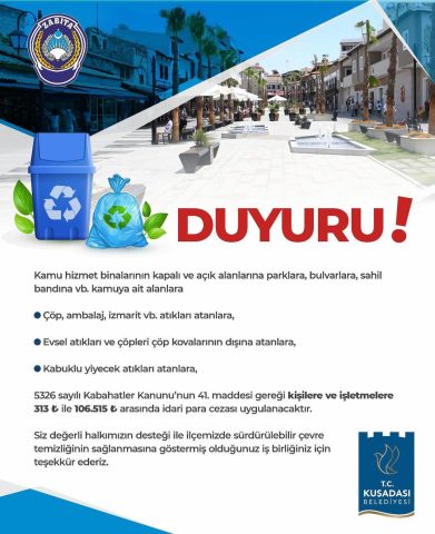 KUŞADASI’NDA YERLERE ÇÖP ATANLARA PARA CEZASI UYGULANACAK