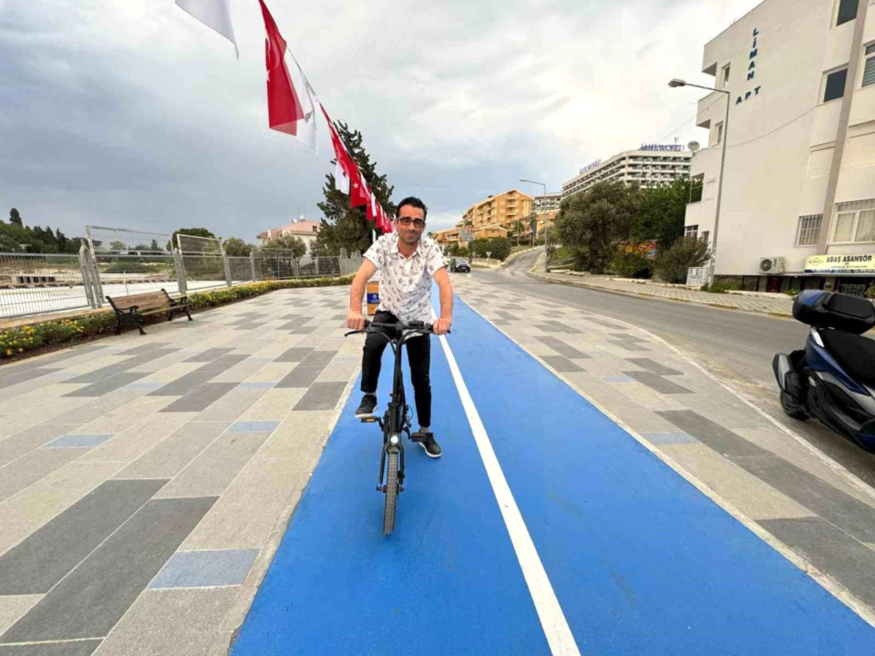 Aydın Büyükşehir Belediyesi'nin Kuşadası'nda hayata geçirdiği sahil projesi, yerel halk ve bisiklet tutkunları tarafından büyük ilgi görüyor. Setur Marina'dan başlayan bisiklet yolu kullanıcılarından tam not alıyor.